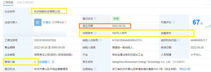 再比如供应商杭州铵能科技有限公司(杭州铵能),2023年度吉宝股份向杭州铵能采购金额为493.2万元。天眼查显示,杭州铵能注册资本为500万元,实缴资本为0,参保人数仅有2人。